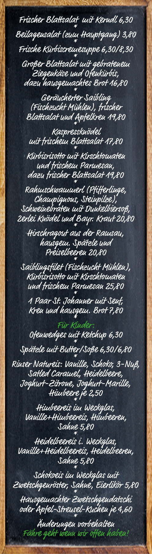 Wichtig ist mir die Herkunft meiner Zutaten. Auf meiner Karte werden Sie vergeblich Straußenfilet auf Papayasalat suchen. Denn ich verwende überwiegend regionale Bio-Produkte, wie “Auerochsenfleisch“ aus dem benachbarten Truchtlaching, Schweinefleisch von der Stiftung Attl, Gemüse aus Großornach und Produkte der Alztaler Hofmolkerei.